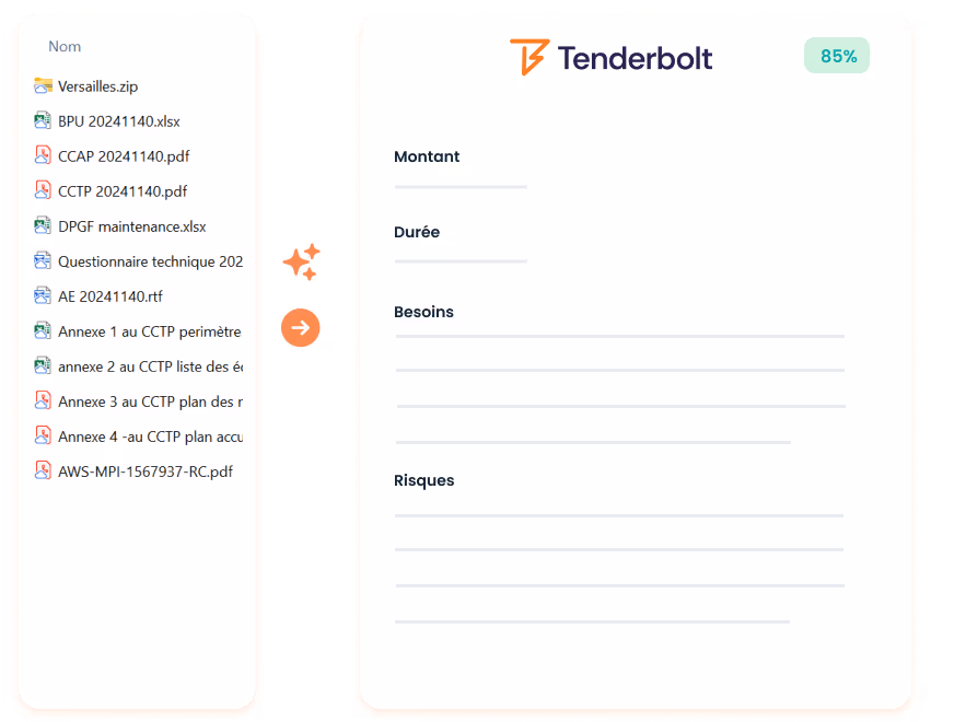 Découvrez comment Tenderbolt accélère tout le processus de réponse aux appels d'offres grâce à l'IA.