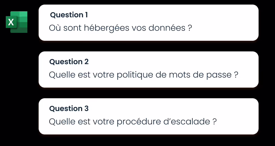 Tenderbolt génère automatiquement avec l'IA les réponses à tous les questionnaires fournisseurs et grilles Excel (fonctionnel, sécurité SI, RGPD, RSE...)